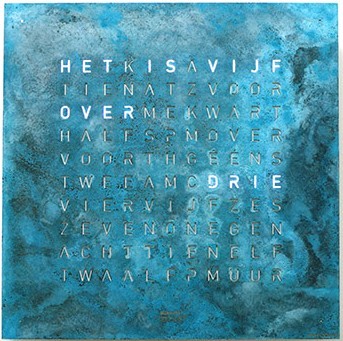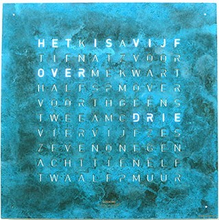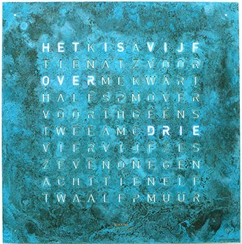 Weergave in verlichte woorden d.m.v. L.E.D. verlichting. De tijd wordt met een interval van 5 minuten op het display veranderd, de tussenliggende minuten worden door de brandende punten op de hoeken weergegeven.