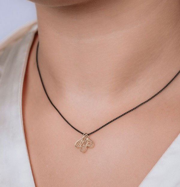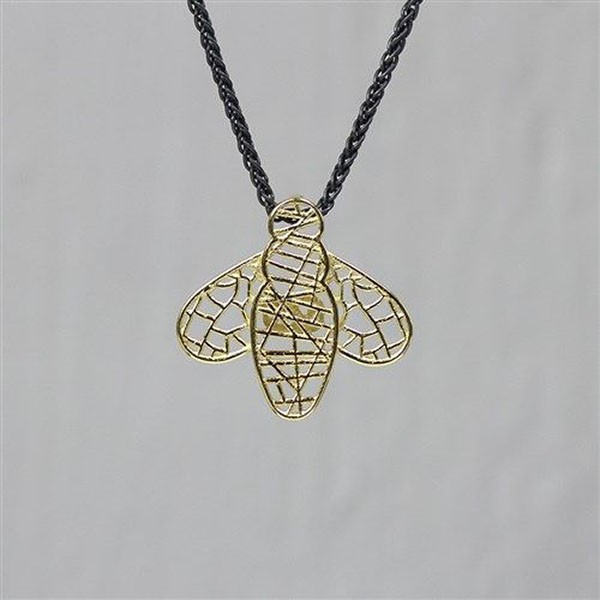 3D print 14krt gouden bij hanger met zwart zilveren collier 20539 uit de Black Beauty serie van Jéh.