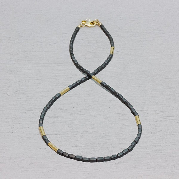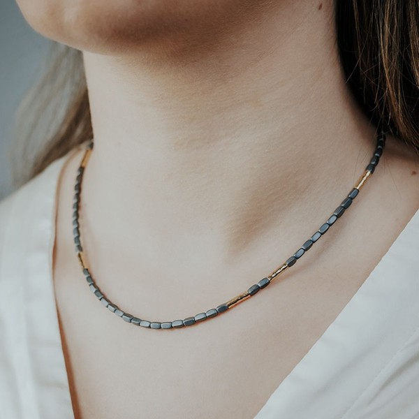 Zilveren collier van hematiet en goldfilled buisjes van Jéh Jewels 21060.