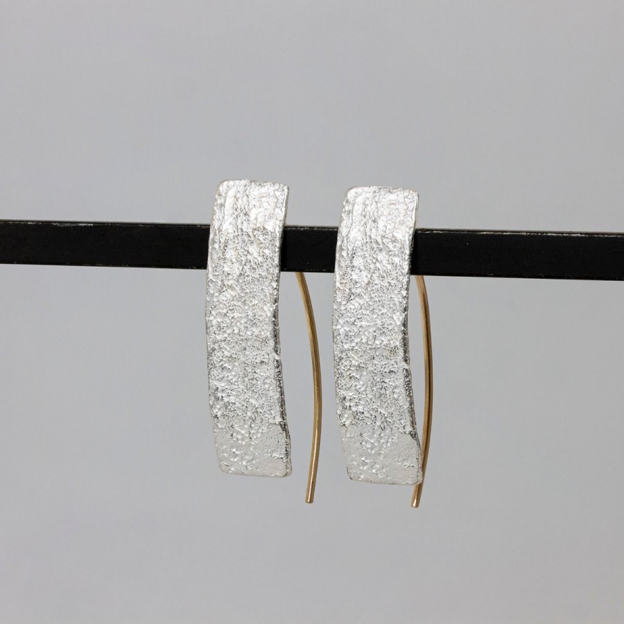Deze oorbellen hebben goldfilled haken en een zilveren gehamerd rechthoekig schild.