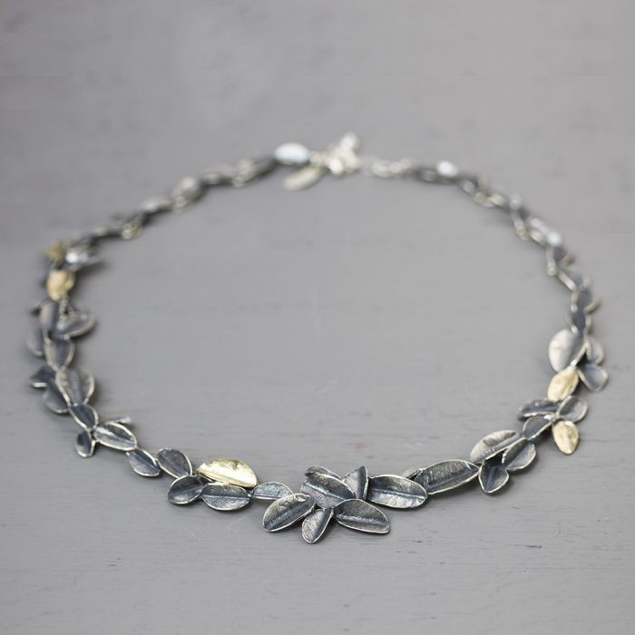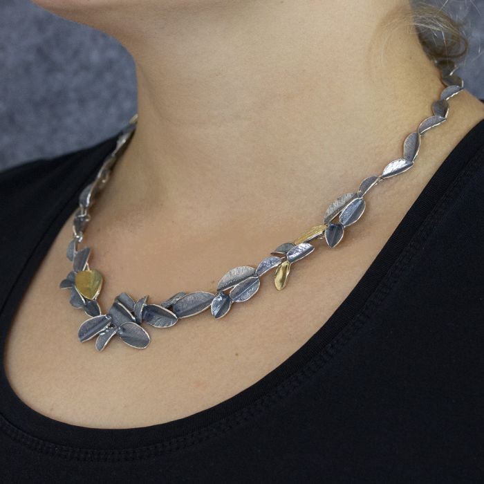 Zilver, goldfilled (14 krt) en geoxideerde schakels.