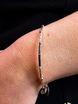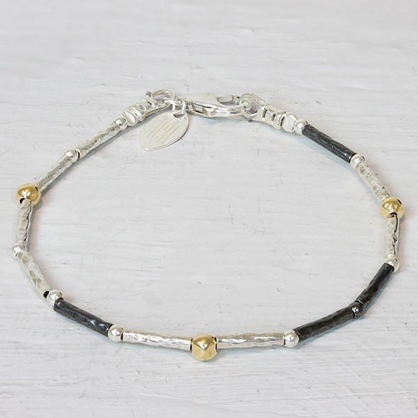 Zilver, goldfilled (14 krt) en geoxideerde schakels.